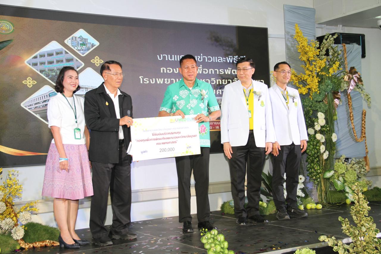 สำหรับพิธีเปิดกองทุนเพื่อการพัฒนาโรงพยาบาลมหาวิทยาลัยบูรพาในครั้งนี้ ผู้บริจาคนำร่องประกอบไปด้วย นายธวัชชัย ศรีทอง จำนวน 1 แสนบาท นายธวัชชัย พงศ์ไพโรจน์ จำนวน 2 แสนบาท นายอดิศักดิ์ เกียรติไกรวัลศิริ จำนวน 1 แสนบาท รศ.ดร.วัชรินทร์ กาสลัก อธิการบดีมหาวิทยาลัยบูรพา จำนวน 1 แสนบาท นายวิทยา คุณปลื้ม นายก อบจ.ชลบุรี จำนวน 1 แสนบาท นายกิตติพงษ์ นางจงพิสุทธิ์ นวรัตนวรกุล จำนวน 2 แสนบาท และบริษัท สุขสมบูรณ์น้ำมันปาล์ม จํากัด จำนวน 5 แสนบาท สำหรับผู้สนใจจะเข้าร่วมโครงการกองทุนเพื่อการพัฒนาโรงพยาบาลมหาวิทยาลัยบูรพา คณะแพทย์ศาสตร์ สามารถสมทบกองทุนได้ที่เลขบัญชี 243-0-33306-6 ธนาคารกรุงไทย สาขามหาวิทยาลัยบูรพา บัญชีโรงพยาบาลมหาวิทยาลัยบูรพา