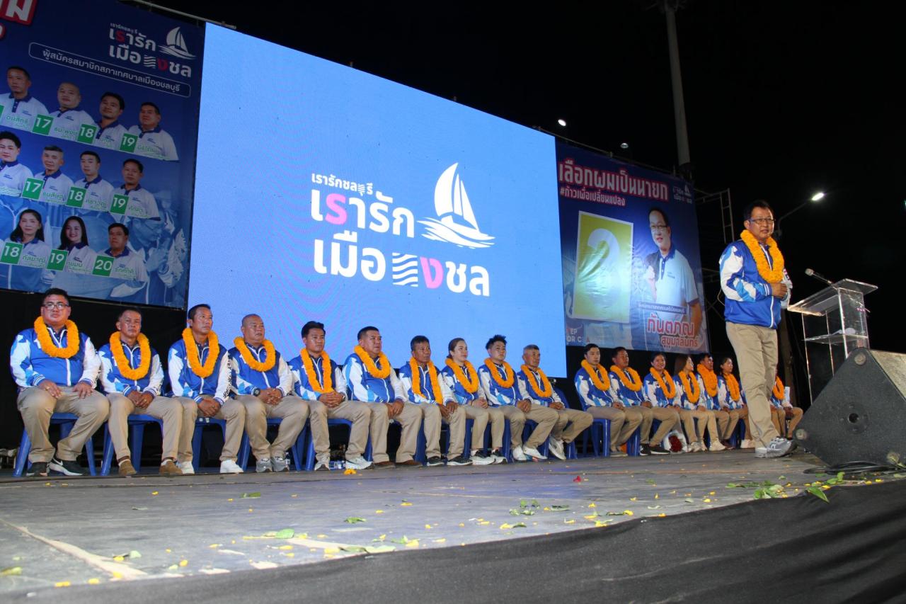 กลุ่มเรารักเมืองชลจัดปราศรัยใหญ่แจงนโยบาย ปรับเปลี่ยนเน้นคุณภาพเยาวชน ปรับเปลี่ยน ทม.เมืองชลบุรีสู่ยุค AI ชี้คุณภาพการบริหารงานที่ล้มเหลว หวังฟื้นฟูเศรษฐกิจ