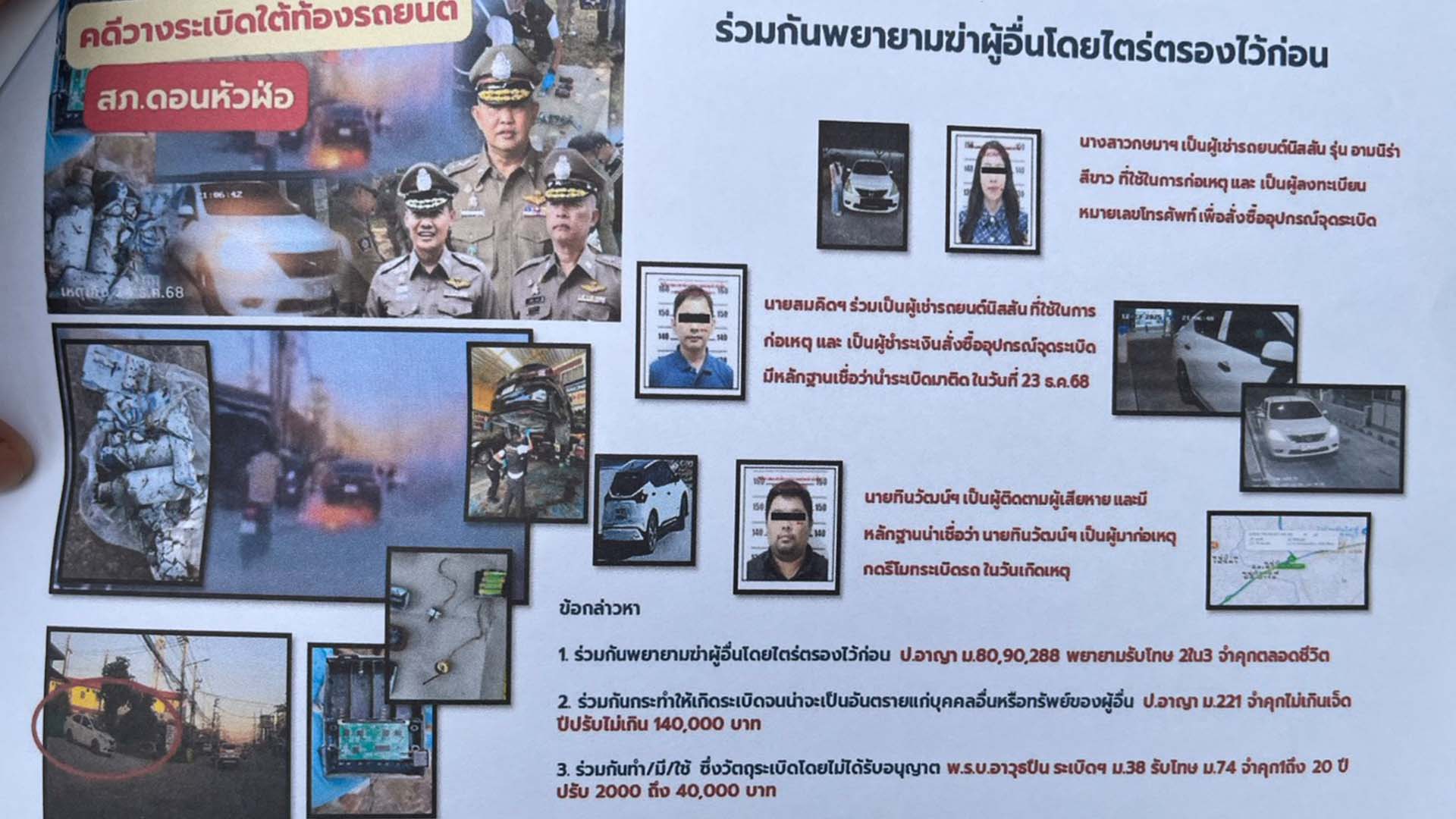 ตำรวจภาค 2 โชว์ผลงานรวบคนร้ายวางระเบิดใต้ท้องรถ เหตุหึงหวง ศึกษาพร้อมซื้ออุปกรณ์ผ่านยูทูป หญิงสาวโชคดีระเบิดไม่รุนแรง รอดตายหวุดหวิด