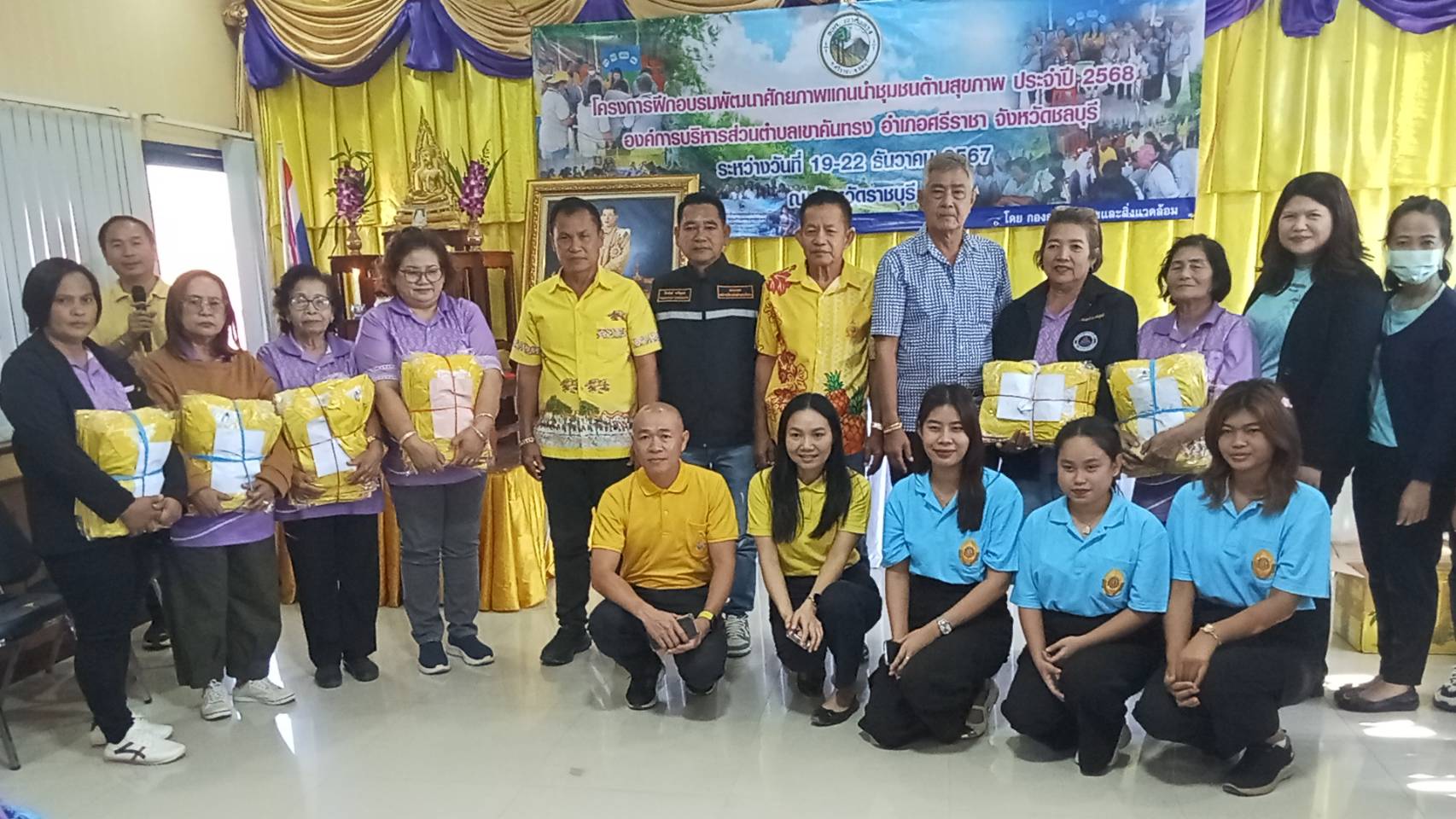 โดยมีผู้ช่วยศาสตราจารย์ ศุกร์ใจ เจริญสุข ผู้อำนวยการวิทยาลัยพยาบาลบรมราชชนนี ชลบุรี ผู้ช่วยศาสตราจารย์ ยุพาวรรณ ทองตะนุนาม รองผู้อำนวยการวิทยาลัยพยาบาลบรมราชชนนี ชลบุรี และนางธัญยธรณ์ ผู้อำนวยการสถานีอนามัยเฉลิมพระเกียรติ 60 พรรษานวมินทราชินี มาให้อบรมความรู้ ซึ่งมีคณะศึกษาดูงาน แต่ละรุ่นมีสมาชิก 90 คน ตามหลักการแพทย์วิถีธรรม เพื่อให้แกนนำสาธารณสุขมีแนวทางในการดูแลสุขภาพ สอดคล้องตามวัตถุประสงค์ของโครงการคือ เพื่อการพัฒนาความรู้และทักษะในการดูแลตัวเองและประชาชนในพื้นที่ เกี่ยวกับการแพทย์ทางเลือก