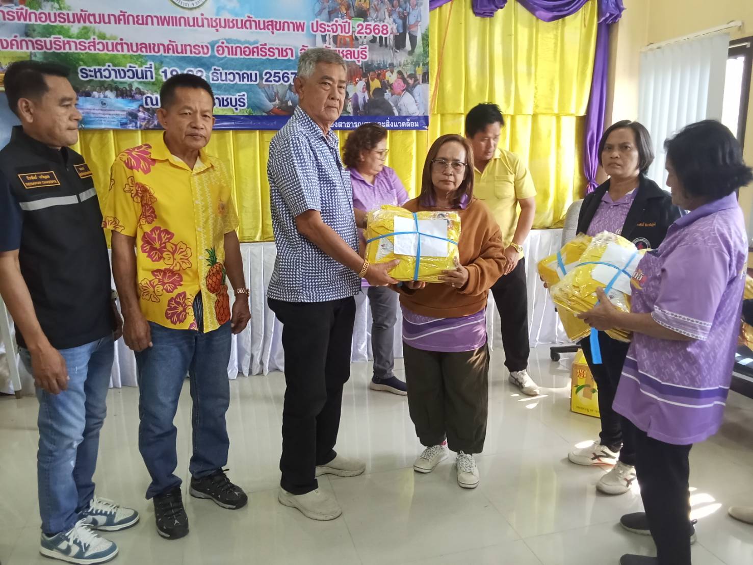เมื่อวันที่ 19 ธันวาคม ที่ห้องประชุม อบต.เขาคันทรง อ.ศรีราชา จ.ชลบุรี นายมะลิ กลั่นด้วง นายก อบต.เขาคันทรง เป็นประธานเปิดโครงการฝึกอบรมและศึกษาดูงานด้านส่งเสริมสุขภาพและป้องกันโรค เพื่อการพัฒนาศักยภาพแกนนำอสม.ด้วยแนวคิด "สบช.โมเดล" โดยมี นายธีรพันธ์ เจริญผล นายธงไชย สว่างอารมณ์ รองนายก อบต.เขาคันทรง นายสมโชค แก้วกลม สมาชิกสภา อบต.เขาคันทรง ร่วมเปิดโครงการ
