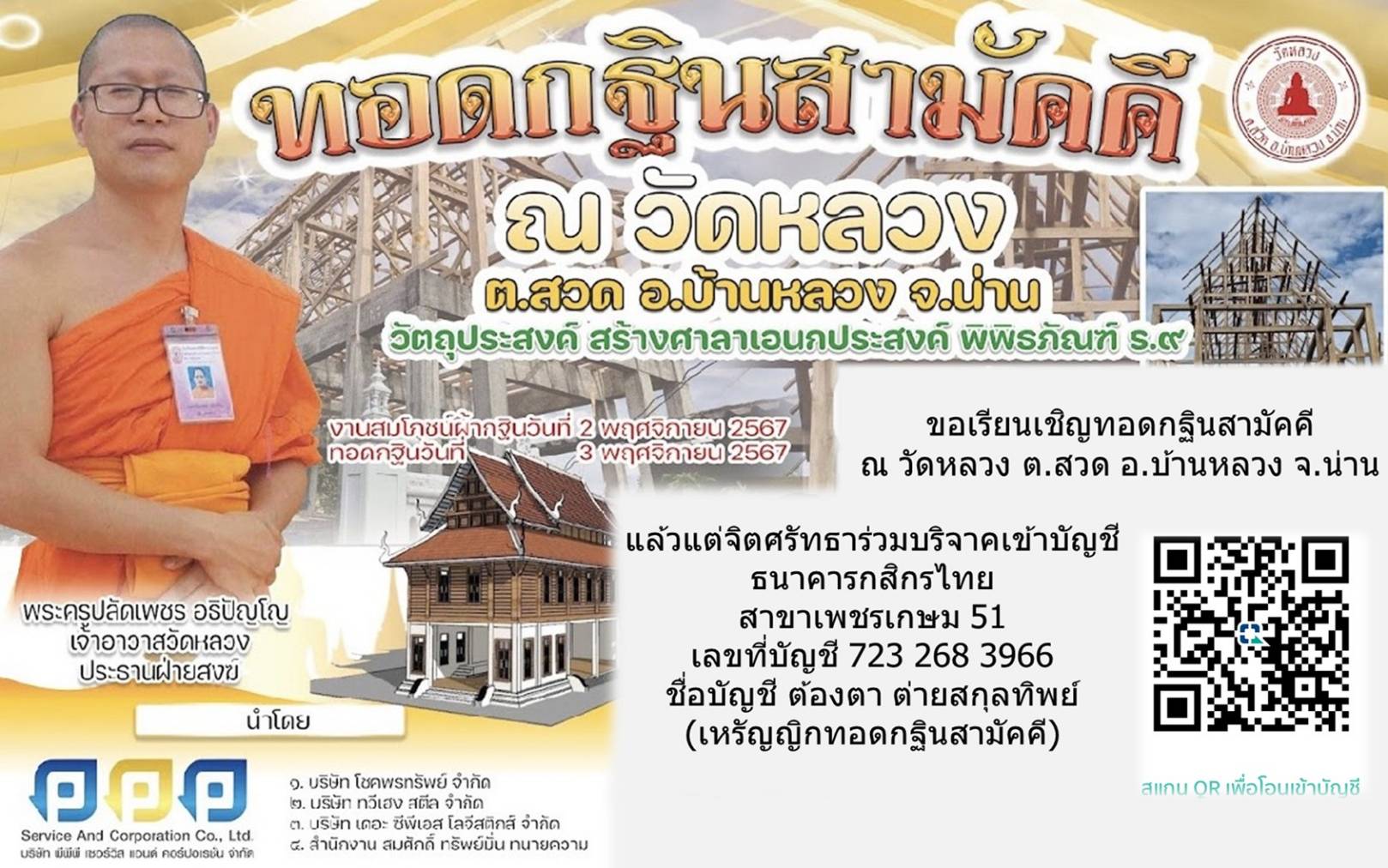 เชิญร่วมทอดกฐินสามัคคีวัดหลวง จ.น่าน สร้างศาลาอเนกประสงค์ พิพิธภัณฑ์ ร.9 เพื่อระลึกถึงแนวทางในการพัฒนาของพ่อหลวง ร.9.