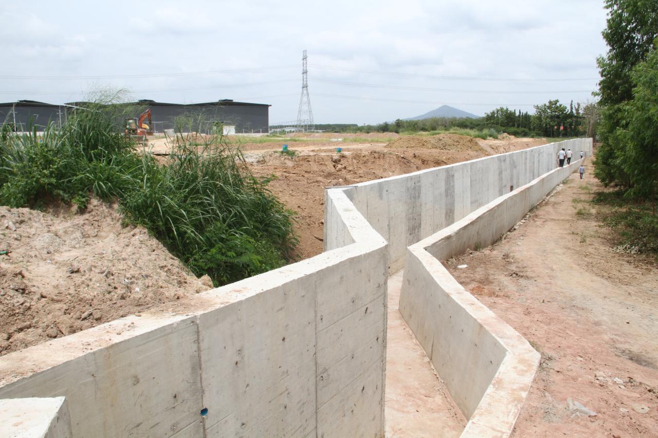 โวยโรงงานจีนสร้างกำแพงถมดินสูงกว่า 6 เมตร ผิดระเบียบหวั่นทรุด สร้างลำรางระบายน้ำเสียหวั่นสารเคมีทะลักทั่ว อ.บ่อทอง-อ.พนัสนิคม ชาวบ้านร้องให้ทางอุตสาหกรรมชลบุรีช่วยตรวจสอบ